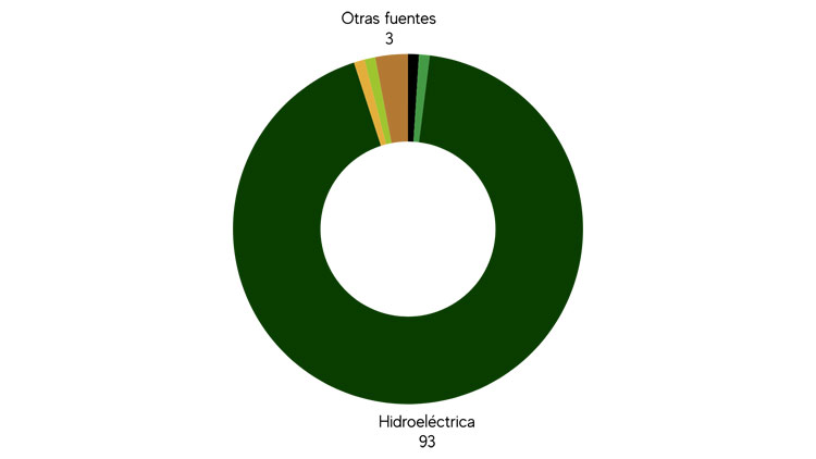 En Ecuador, la matriz energética renovable está ampliamente dominada por la energía hidroeléctrica, que representa aproximadamente el 93% de la generación. Otras fuentes renovables, como la solar, eólica, biomasa y geotérmica, tienen una participación menor, cada una con alrededor del 1%. Adicionalmente, otras fuentes renovables suman aproximadamente el 3%. Aunque la hidroenergía sigue siendo la principal fuente, el país tiene oportunidades para diversificar su matriz y fortalecer el desarrollo de tecnologías limpias que complementen su capacidad energética sostenible.