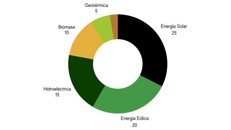 Las energías renovables desempeñan un papel clave en la transición hacia un futuro más sostenible. Actualmente, la energía solar representa aproximadamente el 25% de la generación renovable, seguida por la energía eólica con un 20%. La hidroeléctrica aporta cerca del 15%, mientras que la biomasa contribuye con un 10%. Por su parte, la energía geotérmica representa el 5%, y las fuentes provenientes de olas y mareas suman alrededor del 2%. Este panorama demuestra la creciente diversificación de fuentes limpias y su importancia en la reducción de la dependencia de los combustibles fósiles